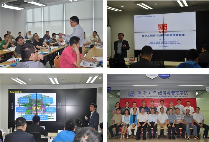 培训均由3天课程培训及1天项目现场参观交流组成,课程培训分别有:董事长乐云教授主讲《重大工程设计过程与设计质量管理》、总裁何清华教授主讲《复杂工程业主方项目管理实践及启示》、副总经理李永奎副教授主讲《重大工程项目前期策划与进度计划管理》、无锡金融项目部项目经理蒋凤昌博士主讲《重大工程质量及施工单位、监理单位管理》,以及研究院陆云波副教授主讲《BIM和工程组织仿真》;项目现场交流活动则安排到公司所服务的某项目现场进行参观与交流。