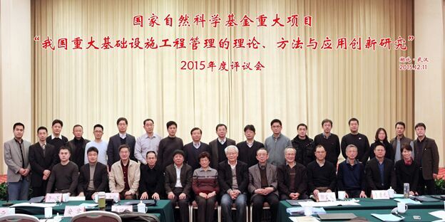 国家自然科学基金重大项目“我国重大基础设施工程管理的理论、方法与应用创新研究” 年度评议会于2015年12月11日在湖北省武汉市东湖宾馆召开。研究院乐云教授、何清华教授、施骞教授、陆云波副教授、胡毅助理教授及十余名博士生参加了本次会议。本次莅临重大项目评议的专家指导组组长是同济大学郭重庆院士,成员包括中国航天工业集团于景元研究员,中国科学院科技政策与管理科学研究所徐伟宣研究员,中国石油天然气股份有限公司黄维和院士和港珠澳大桥管理局局长朱永灵高工。出席会议的国家自然科学基金委员会领导有管理学部主任吴启迪教授、常务副主任李一军教授、副主任高自友教授、刘作仪处长和雒兴刚教授。