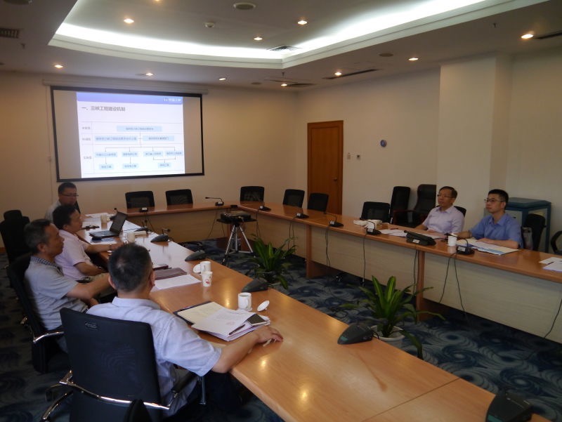 7月13日,课题组一行率先来到三峡工地,在三峡集团枢纽管理局的配合下,参观考察了三峡工程展览馆、船闸、升船机、左岸电厂中控室、大坝坝顶、茅坪溪防护坝、地下电站等部位,并在三峡集团枢纽工程部主任黄爱国、合同管理部主任胡银华的共同参与下,了解了三峡工程建设实施组织和管理的总体情况,并就三峡建设时期的组织设计、职能部门构成、人员配置情况以及合同管理等问题进行了充分的沟通和交流。