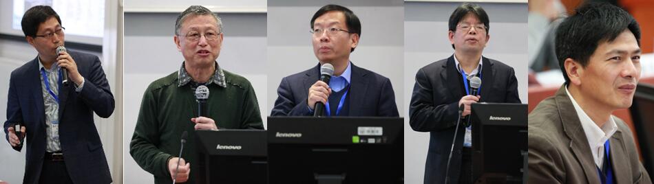 各课题汇报人(左起):哈尔滨工业大学薛小龙教授、南京大学盛昭瀚教授、