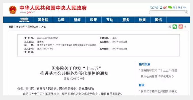国务院印发的《"十三五"推进基本公共服务均等化规划》(国发[2017]9号)提出,"十三五"期间全面发行和应用社会保障卡,持卡人口覆盖率达到90%,实现社会保障一卡通,支持社会保障卡跨业务、跨地区、跨部门应用,建立社会保障卡应用平台和覆盖广泛的用卡终端环境,健全社会保障卡便民服务体系,完善社会保障卡规范管理和安全保障体系。