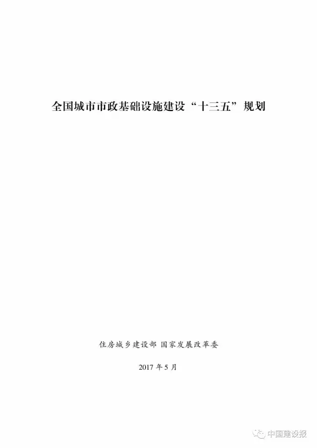 经国务院同意,由住房城乡建设部、国家发展改革委组织编制的《全国城市市政基础设施规划建设“十三五“规划》(以下简称《规划》)(后附全文)日前正式发布实施。