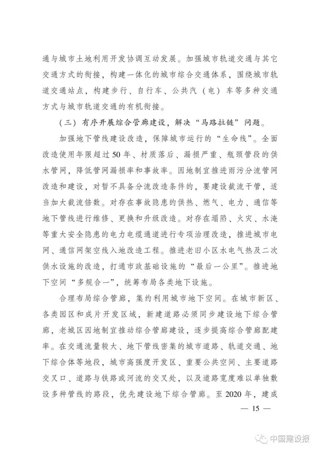 有序开展综合管廊建设,解决“马路拉链”问题;
