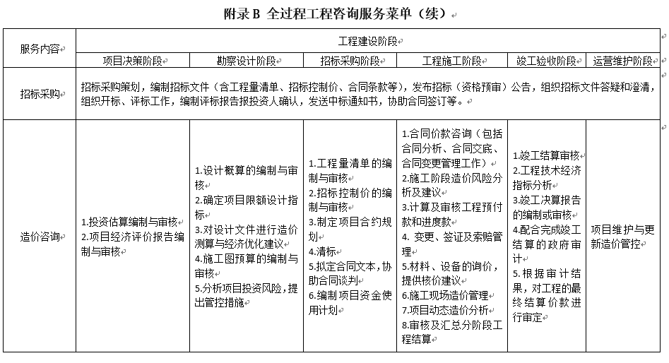 (3)招标采购阶段包括但不限于:招标策划、市场调查、招标文件(含工程量清单、投标限价)编审、合同条款策划、招投标过程管理等;