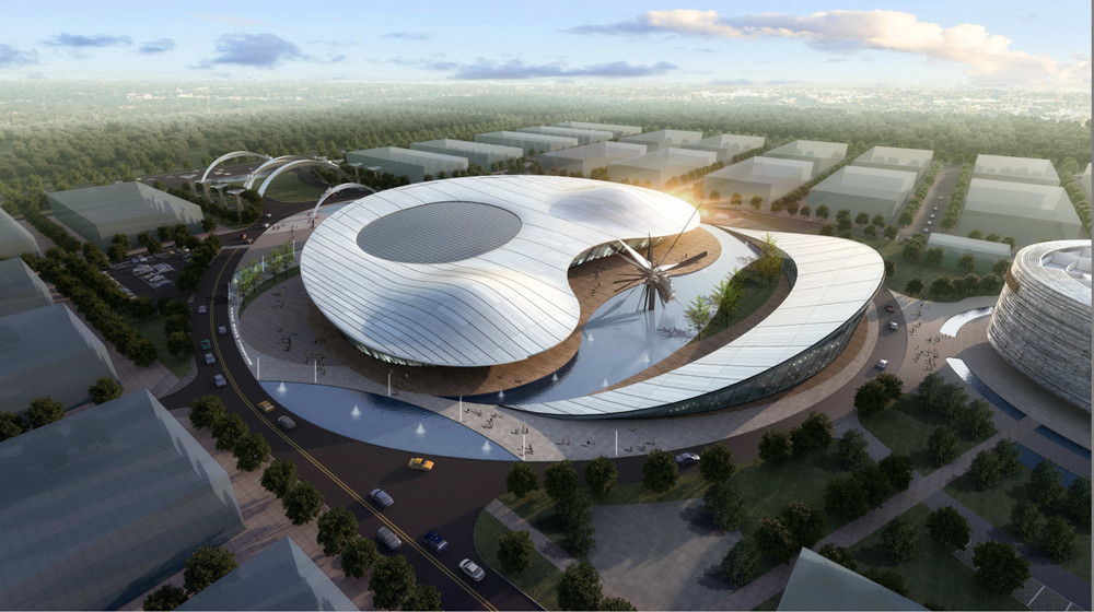 “渭南申华汽车博展园”项目是集汽车销售4S店、车检、汽车装潢、汽配以及汽车文化主题公园、体验道、博物馆、综合展馆、办公、酒店、商业配套等功能于一体,通过植入与汽车及汽车文化相关的汽车主题雕塑、图案、建筑、景观等要素,打造一站式的汽车文化体验产业园区。该项目占地900亩,一期由展厅,办公楼及各大4S店组成,其中展厅总建筑面积 16111.22㎡,其中地上:15018.53㎡,地下:1092.69㎡,办公楼高度19.65米 建筑面积7082.29㎡
